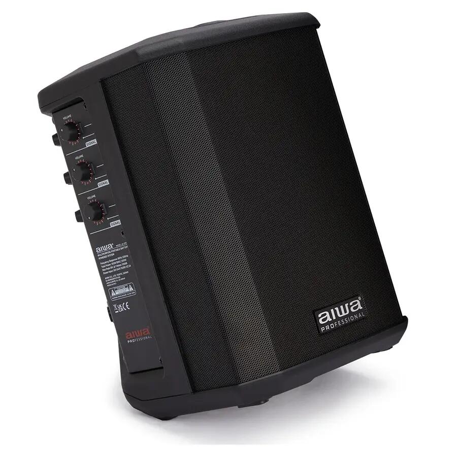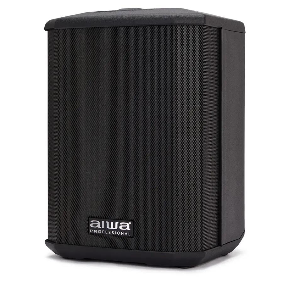 AIWA Professional PROSP6 è un diffusore amplificato portatile con batteria integrata,mixera 3 canali per microfono, chitarra e segnali di linea, potenza RMS di 100 W e DSP interno.