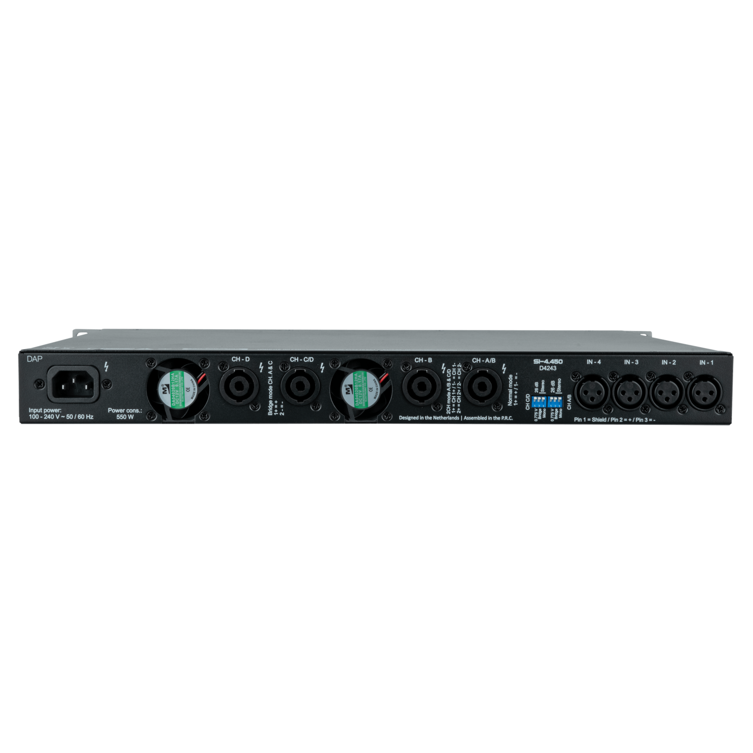 L’amplificatore digitale DAP SI-4.450 è un dispositivo compatto 1U di alta efficienza, pensato per installazioni fisse, impianti PA e situazioni dove servono quattro canali affidabili con potenza e stabilità. Supporta modalità stereo, bridge e mono, ed è progettato per lavorare con carichi fino a 2 Ω, offrendo prestazioni elevate in spazi ridotti.