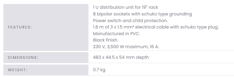 Fonestar FRP-8 Multipresa elettrica 1U rack 19’’ Product code: FRP-8 2/5 working days €35,00 45,00 Add to cart Multipresa elettrica 1U rack 19''