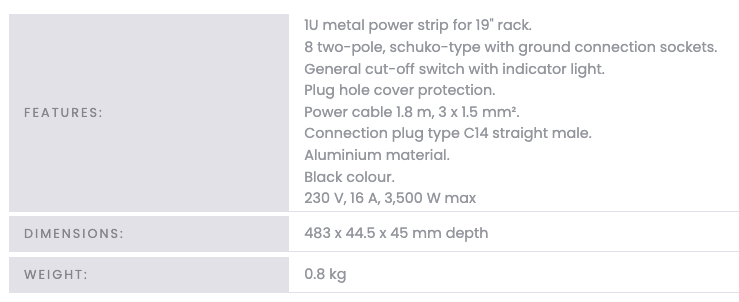 Fonestar FRP-8MC14 Multipresa elettrica 1U rack 19’’ con interruttore Product code: FRP-8MC14 2/5 working days €49,00 69,00 Fonestar FRP-8 €35,00 45,00 Add to cart Multipresa elettrica 1U rack 19'' e tasto on-off