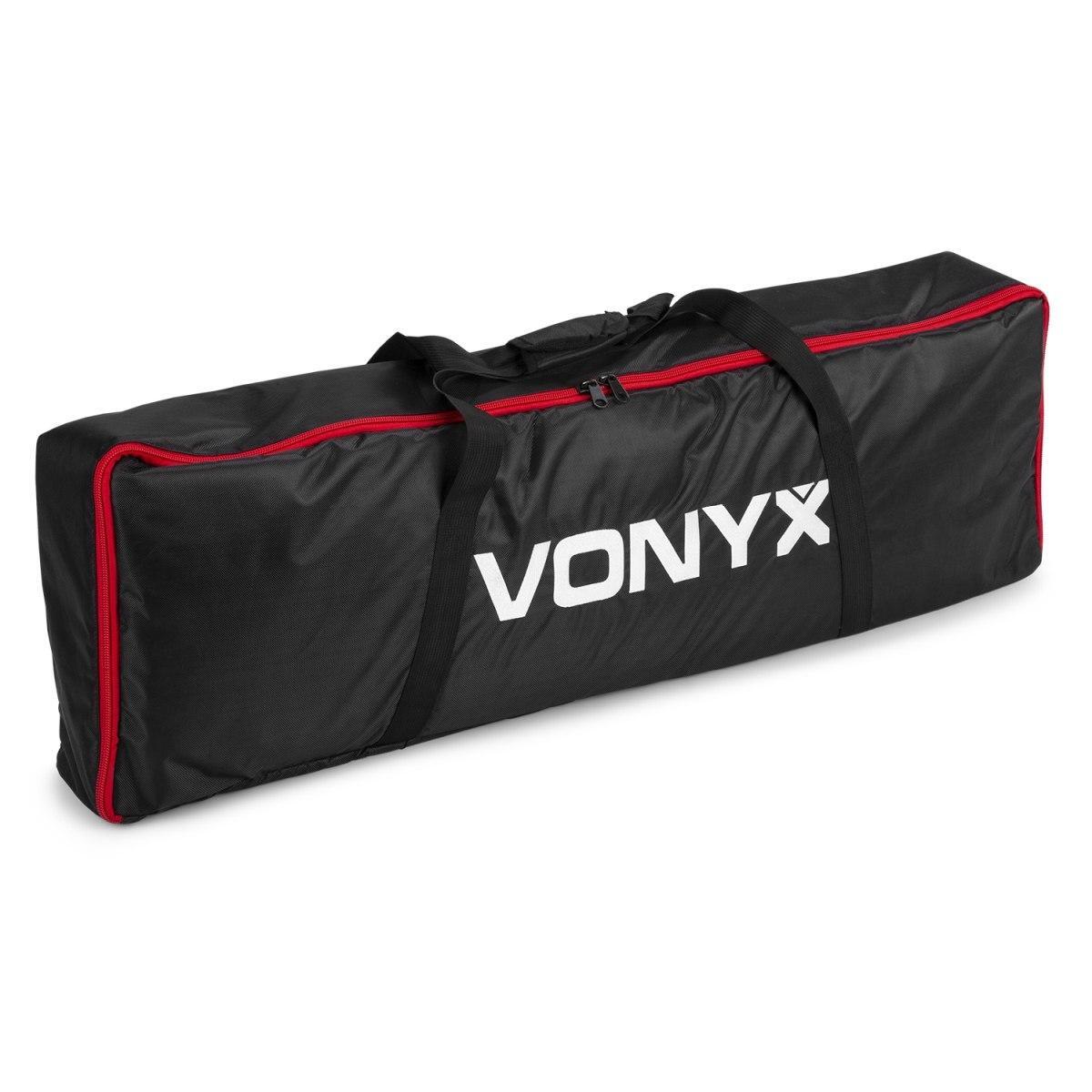 A differenza di altri supporti regolabili che utilizzano i dadi ad alette per modificare l'altezza del supporto, il DJP170 viene regolato in altezza istantaneamente premendo il nostro meccanismo di regolazione interno Vonyx Easy appositamente progettato, che rilascia tutti e quattro i blocchi contemporaneamente, con una mano mentre si sposta facilmente la parte superiore all'altezza che preferisci con l'altra.