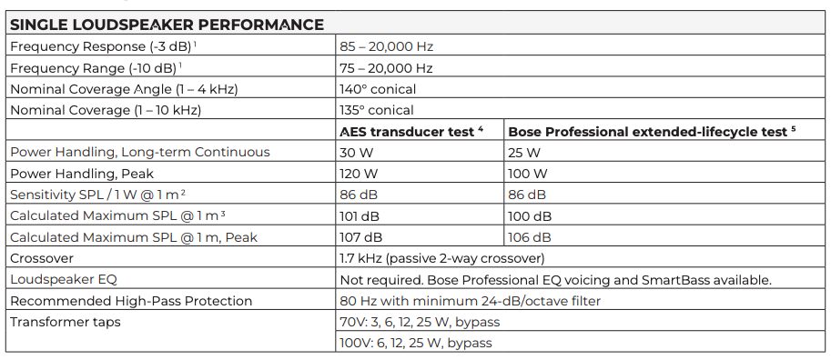 Alti chiari e bassi sorprendenti per le loro dimensioni grazie ai driver coassiali a due vie — senza bisogno di DSP o EQ. Per un suono ancora più performante, è possibile combinarli con DSP e amplificatori Bose Professional selezionati, che abilitano l’equalizzazione dei diffusori e la tecnologia SmartBass, ampliando resa e risposta a qualsiasi livello di ascolto.