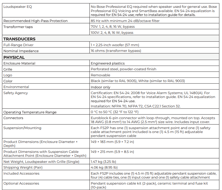 Progettati per prestazioni di alta qualità sia nella musica di sottofondo sia negli annunci vocali, i diffusori FS sono ideali per quasi tutti gli ambienti commerciali.