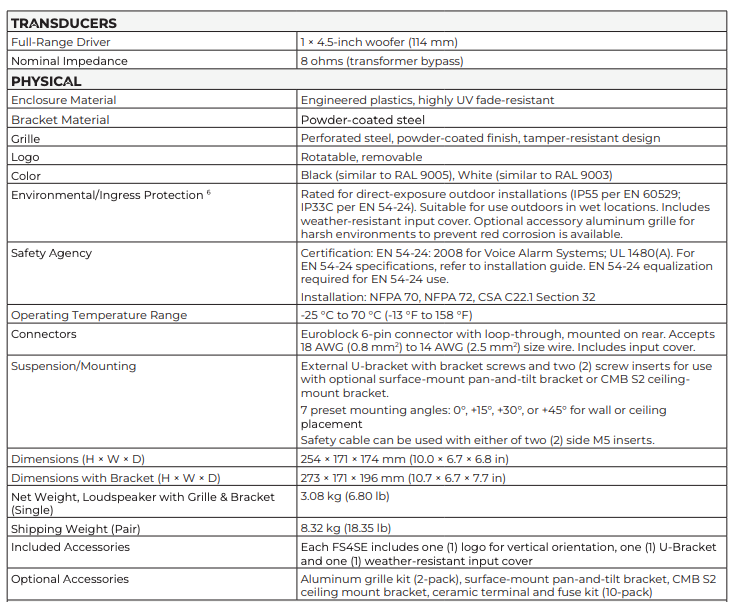 Porta il suono di qualità ovunque con il modello FS4SE — certificato per installazioni all’aperto e in ambienti umidi.