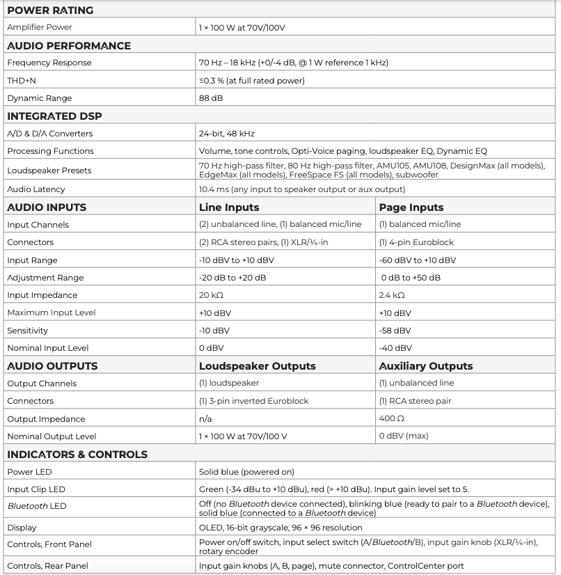 Amplificatore serie Veritas 1×100W 70V/100 V – Ingresso wireless Bluetooth® 5.0 e il pratico display OLED