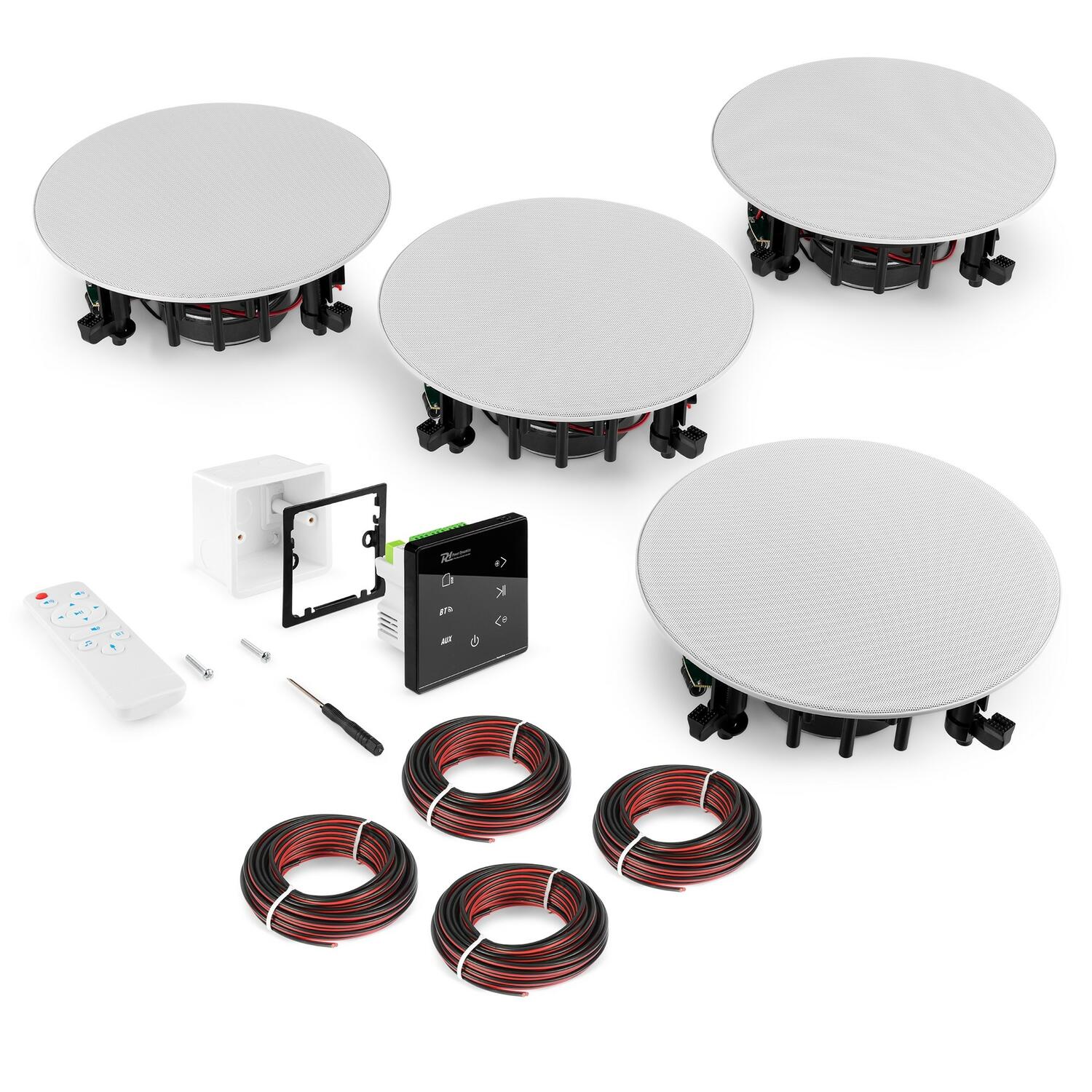 Sistema di amplificazione stereo con 4 altoparlanti ad incasso 4×20W e pannello sensibile al tocco