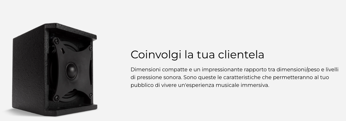 Il suono bilanciato e naturale è perfetto in applicazioni near-field assicurando sempre un’ottima intelligibilità.