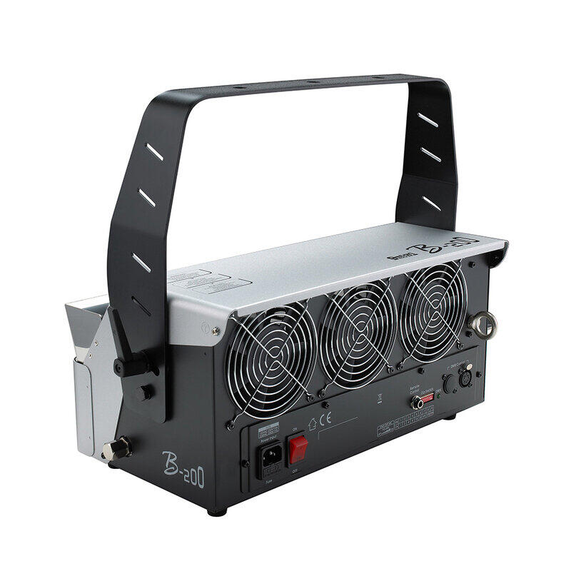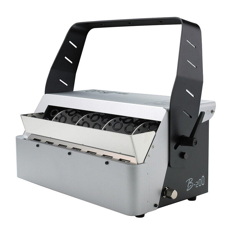 Macchina per bolle ad elevato volume di uscita dotata di 4 ruote a doppie bolle per produrre una grande quantità di bolle; il set di 3 ventole sul retro trasporta le bolle più lontano per aumentare l'area di copertura.