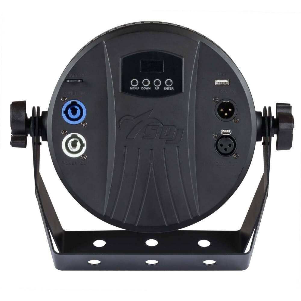 Controllo e programmazione | 6 configurazioni DMX disponibili: 3/3A/4/4A/10/15 canali Controllo segnale USITT DMX 512 Modalità Master/Slave selezionabile Modalità Sound con sensibilità microfono regolabile Modalità Static Color con regolazione indipendente della strobo Modalità Automatica con la possibilità di richiamare da display 8 programmi Modalità Color con la possibilità di richiamare 51 macro colori preimpostate con regolazione indipendente della strobo |