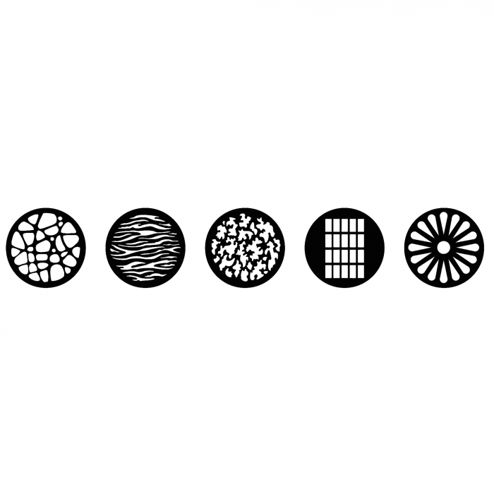 - Cinque gobo di design e barndoor a 4 lamelle inclusi