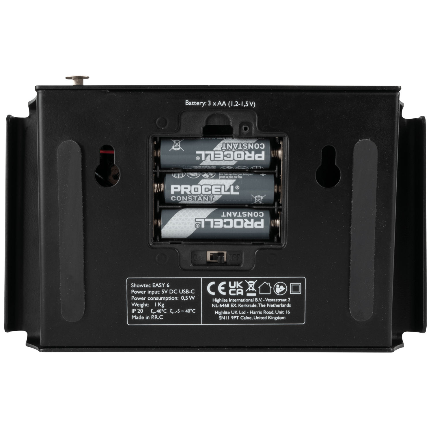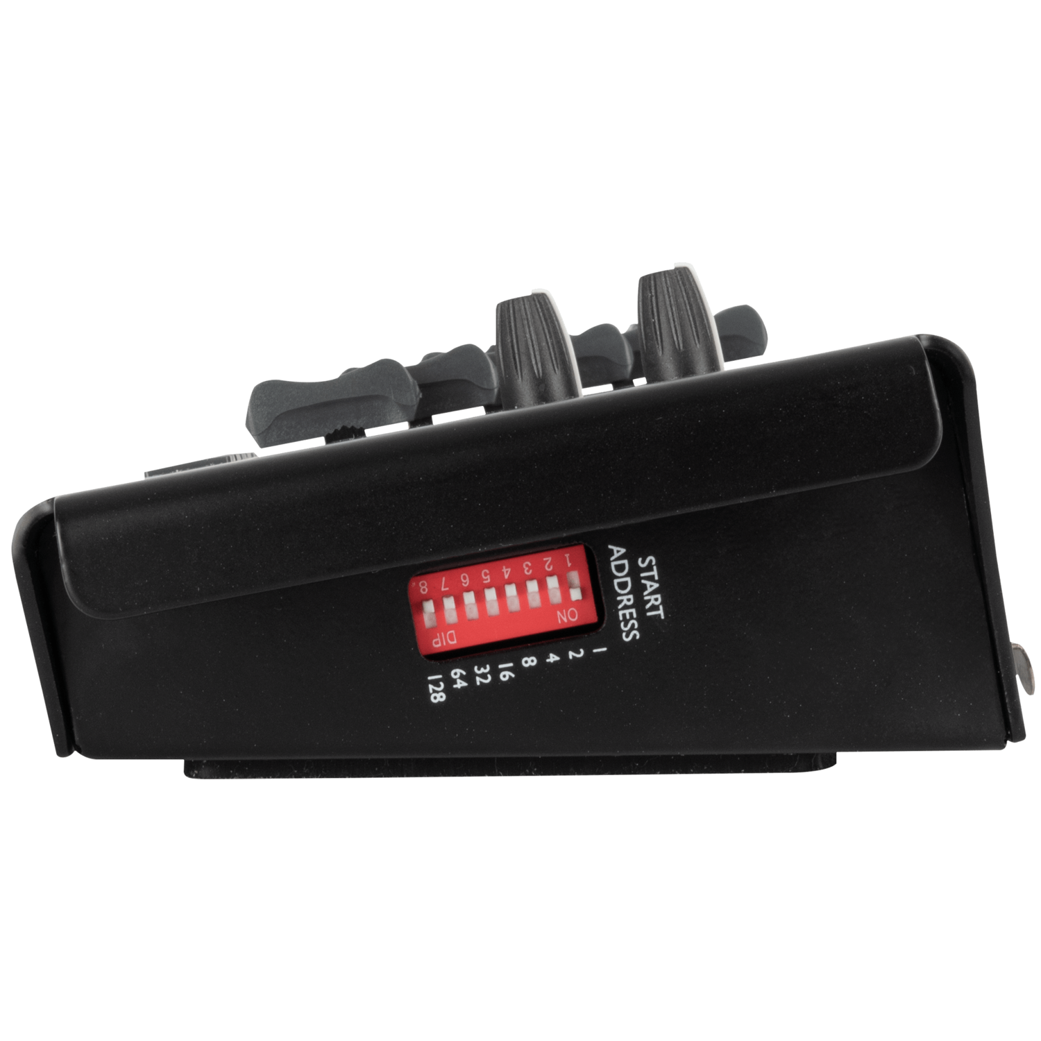 Sul lato del controller è presente un interruttore DIP che consente di modificare l’indirizzo iniziale dei 6 canali. Il controller può essere alimentato tramite USB-C o 3 batterie AA.