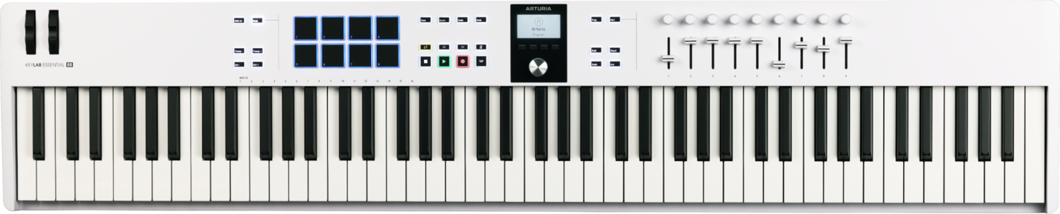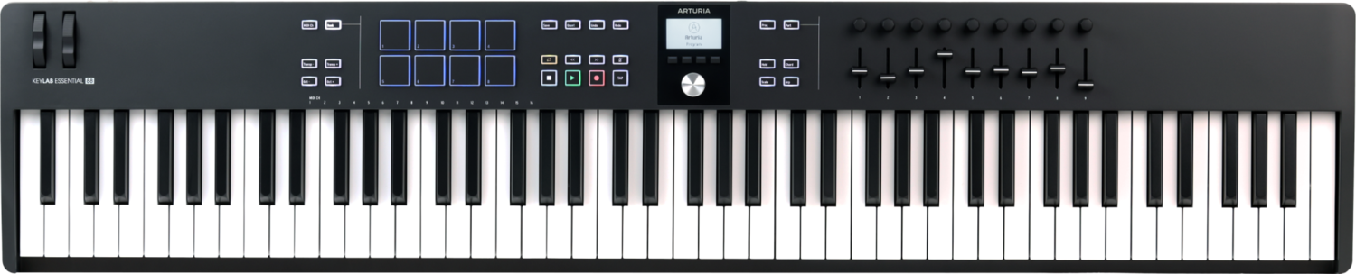 Arturia KeyLab Essential 88 mk3 è la nuova master keyboard della casa francese che consente di avere, a fronte di una spesa contenuta, un controller avanzato 88 tasti con un ricco bundle di software.