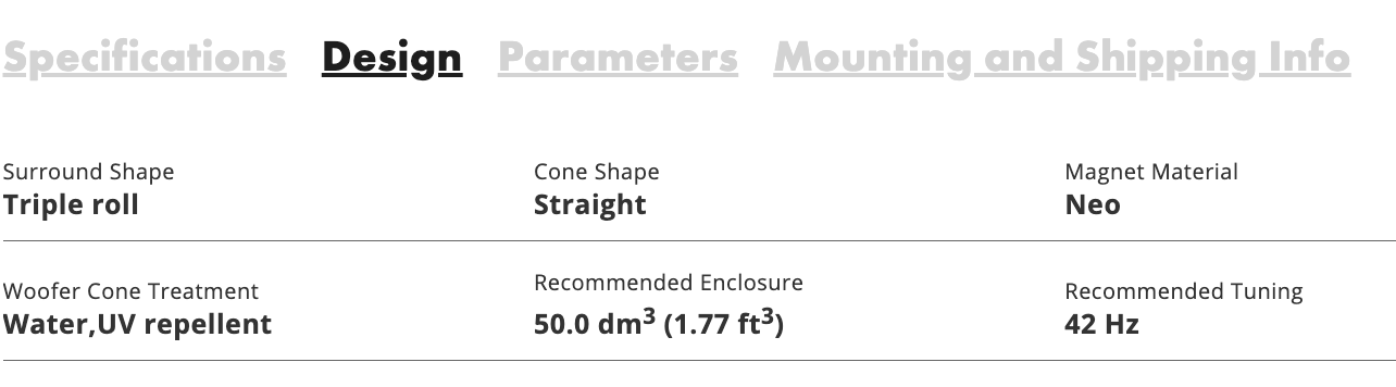 Offre prestazioni eccellenti in casse reflex compatte da 30 a 70 litri, garantendo basse frequenze profonde, controllo e grande affidabilità.