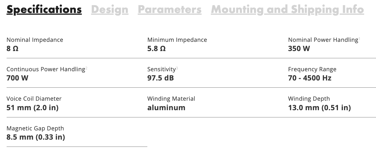 Design Ultra-Leggero: Grazie all'impiego del neodimio e a una progettazione mirata, il peso è ridotto al minimo, rendendo questo trasduttore il componente perfetto per line array e sistemi touring dove il rapporto prestazioni/peso è fondamentale.