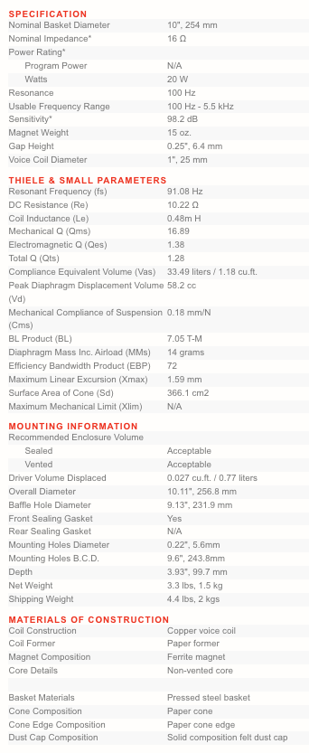 Frequenza di risonanza (Fs): 100 Hz