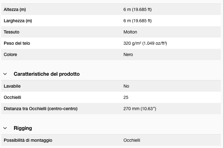 Fondale scenografico nero con occhielli, cm. 600×600h, 320g/m2
