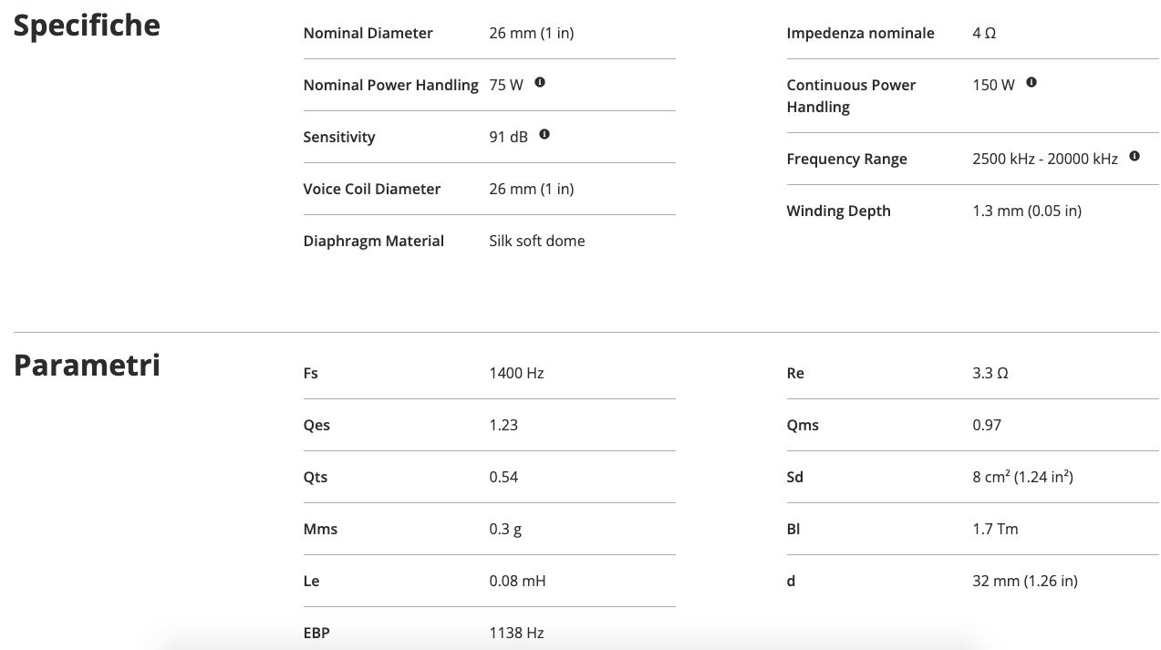 Con una sensibilità di 90 dB e una tenuta in potenza di 150W di picco, rappresenta la scelta ideale per chi cerca un'alta fedeltà d'ascolto senza le asprezze tipiche dei tweeter metallici, assicurando un'integrazione perfetta in sistemi a due o tre vie di qualità superiore.