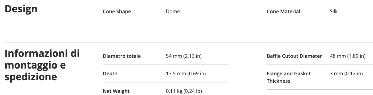 Grazie alla membrana in seta trattata e al magnete in ferrite, garantisce una risposta in frequenza estremamente lineare e una dispersione angolare ottimale, ideale per ricostruire una scena sonora precisa e fedele.