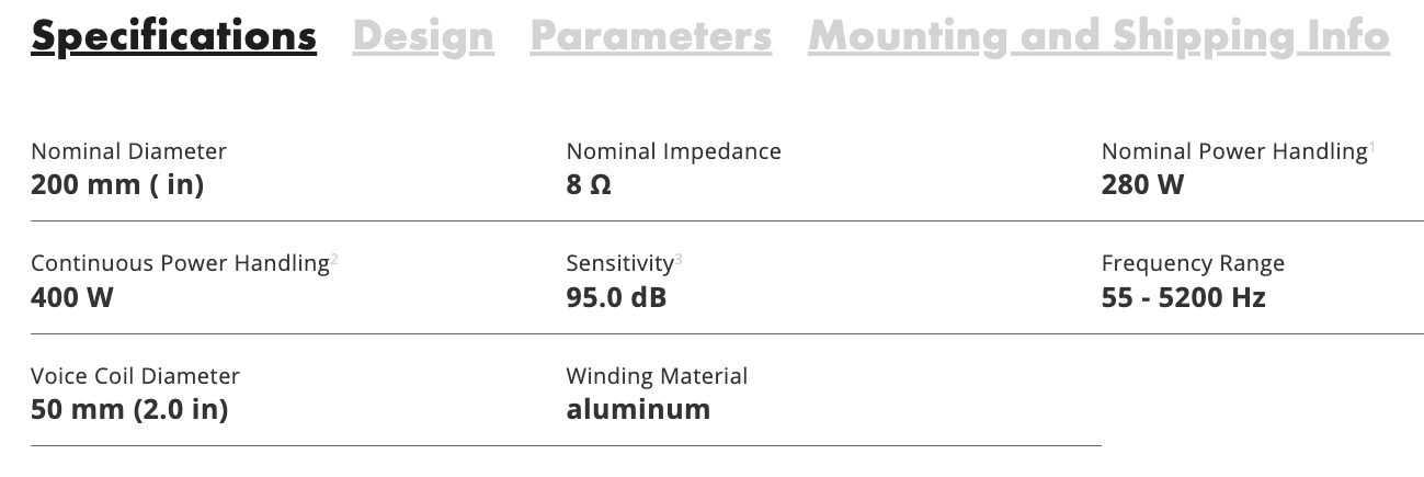 Il Eighteen Sound 8MB400 è un woofer 8 pollici midbass professionale progettato per offrire alta linearità, buona efficienza e ottima tenuta in potenza.