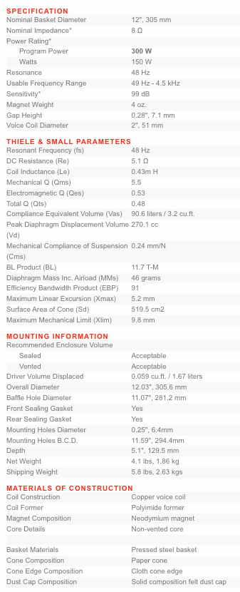 Consigliato per basso. Ideale in cabinet ventilati o sigillati da 1X, 2X e 4 X12.