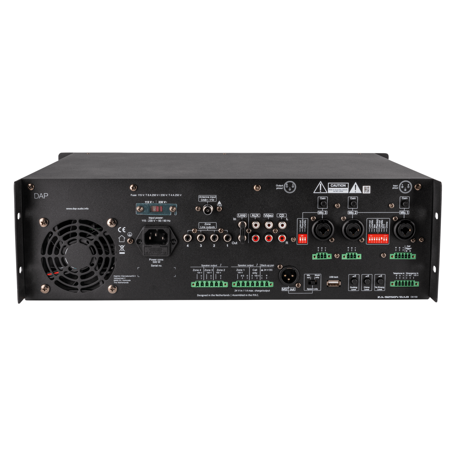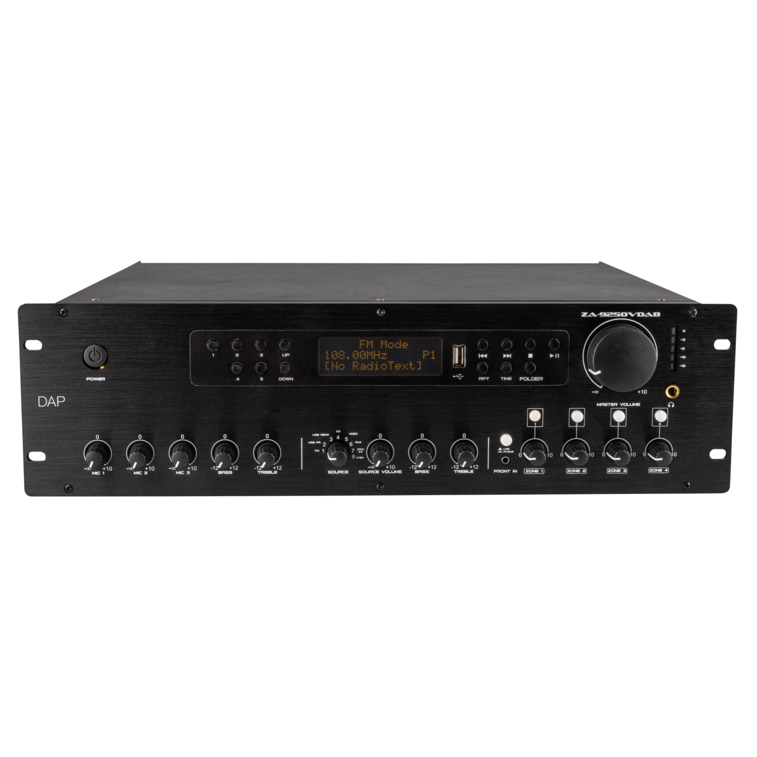 Il DAP ZA-9250VDAB è un amplificatore mixer a 4 zone e lettore multimediale da 250 W 100 V con controllo del volume a zone.