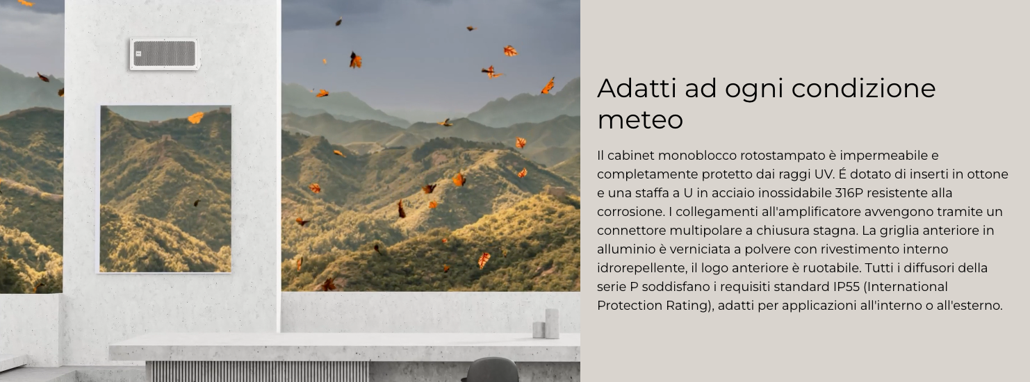 Il P1108-T è adatto per installazioni all’interno e all’esterno ed è conforme alle norme del codice IP 55 (International Protection Rating).
