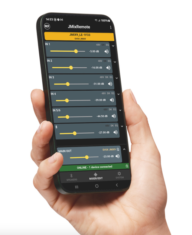 L’app è compatibile con i modelli JMIX8 e JMIX9, garantendo un’esperienza di controllo uniforme su tutta la serie RCF EVOX, ideale per chi utilizza più sistemi o desidera una gestione coerente e intuitiva.