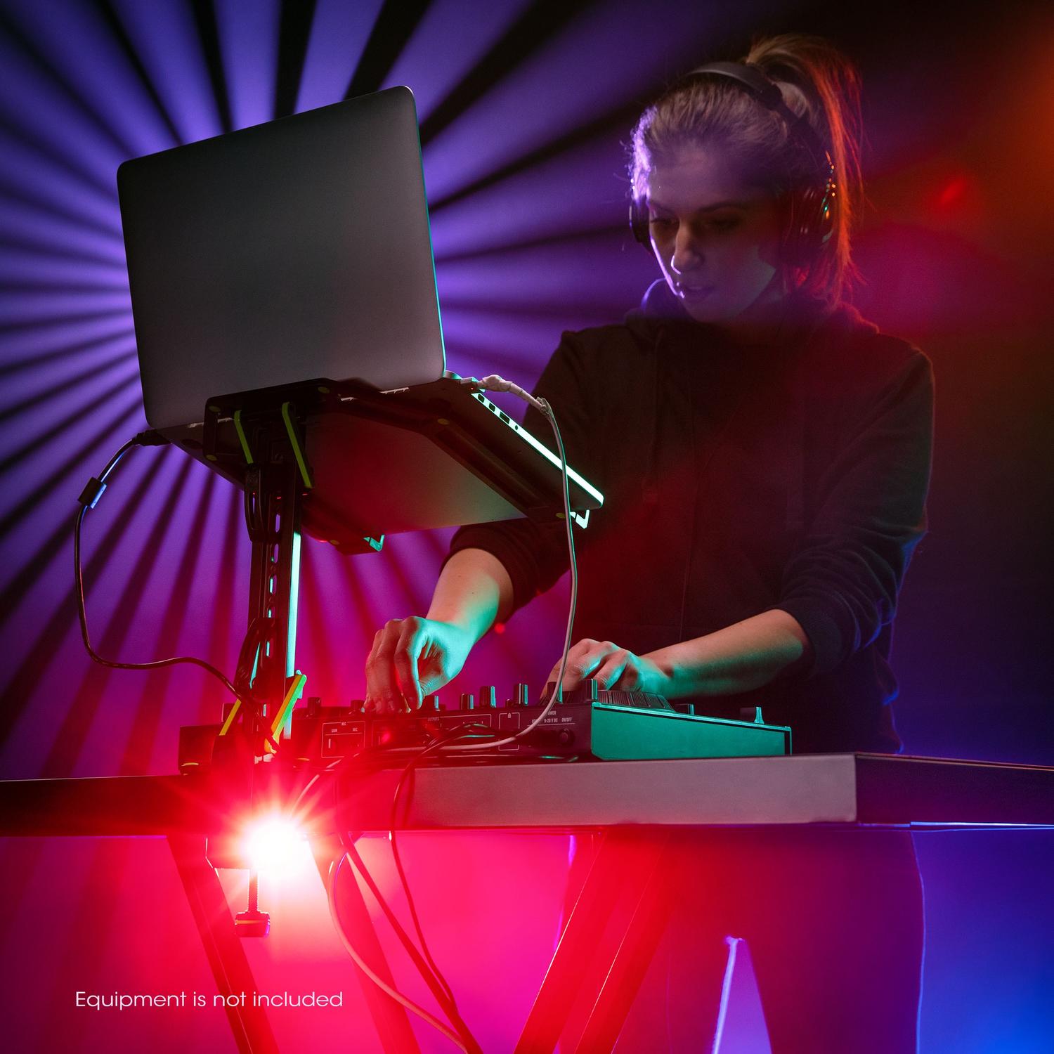 Puoi disporre comodamente la tua configurazione personalizzata con laptop, mixer per DJ, controller o sintetizzatore rack sull'ampio tavolo da 48 cm di profondità e 100 cm di larghezza.