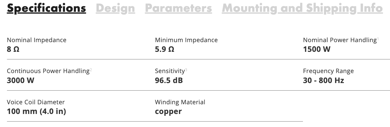 Bobina da 100mm (4") ISV: Utilizza la tecnologiaInterleaved Sandwich Voice Coil(ISV), dove gli avvolgimenti sono distribuiti su entrambe le facce del supporto. Questo design garantisce una stabilità termica eccezionale, una durata prolungata e un fattore di forza (Bl) incredibilmente elevato.