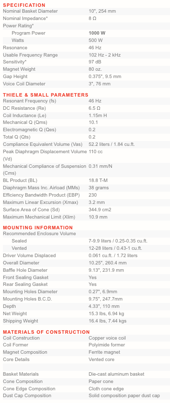 Applicazioni consigliate: mid-bass in sistemi PA, cabinet per basso/chitarra, monitor da palco