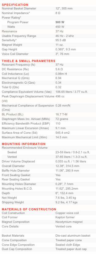 • Applicazioni consigliate: subwoofer in sistemi PA, cabinet per bassi, applicazioni audio professionali ad alta potenza