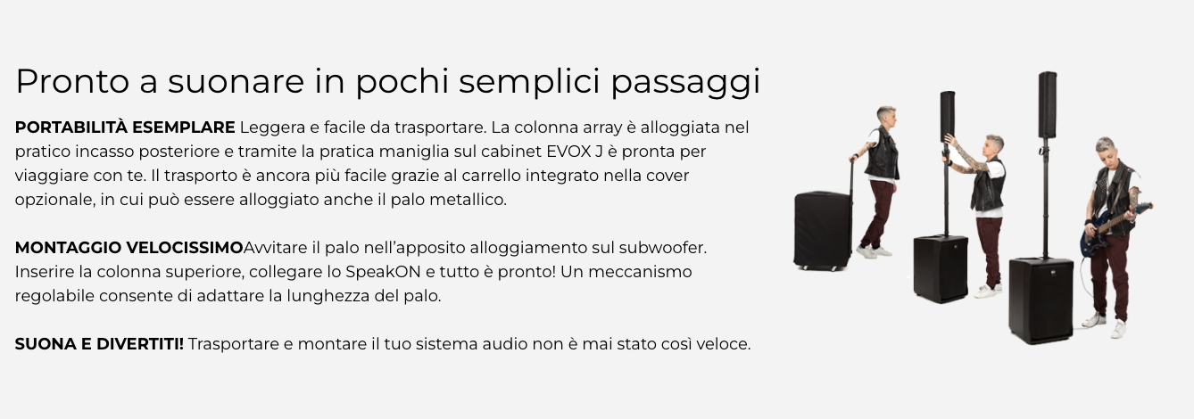 Dai musicisti solisti ai grandi party con DJ, la flessibilità del sistema EVOX J è un must.
