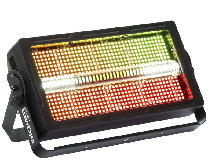 Proiettore strobe LED professionale ideale per effetti luminosi ad alta energia in eventi, concerti, locali e spettacoli. Progettato per offrire flash intensi, controlli versatili e prestazioni affidabili, il BLZ Strobe è perfetto per creare atmosfere dinamiche e coinvolgenti in ogni tipo di evento.