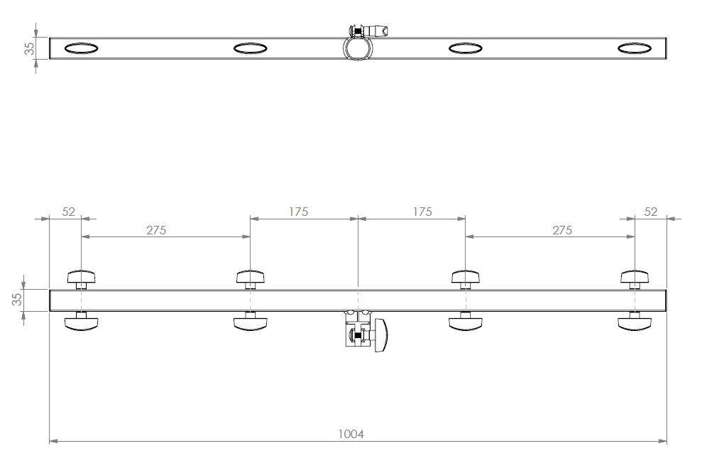 Barra in acciaio da 1 mt per supporti per luci. Sorregge fino a 8 PAR. Connettore a "T" con diametro interno da 35 mm.