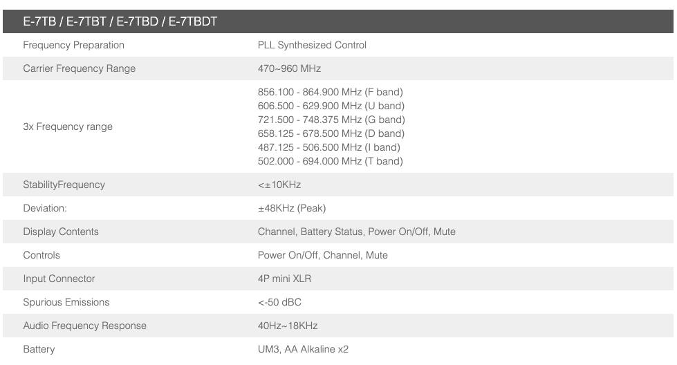 - E-7TBD trasmettitore bodypack