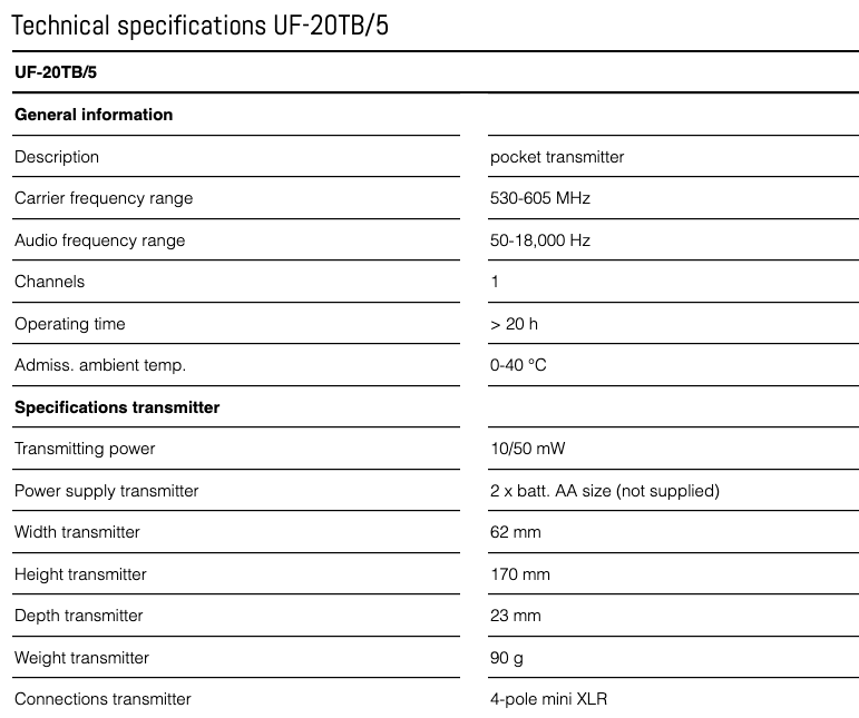n. 1 Trasmettitore bodypack UF-20TB in metallo UHF PLL.